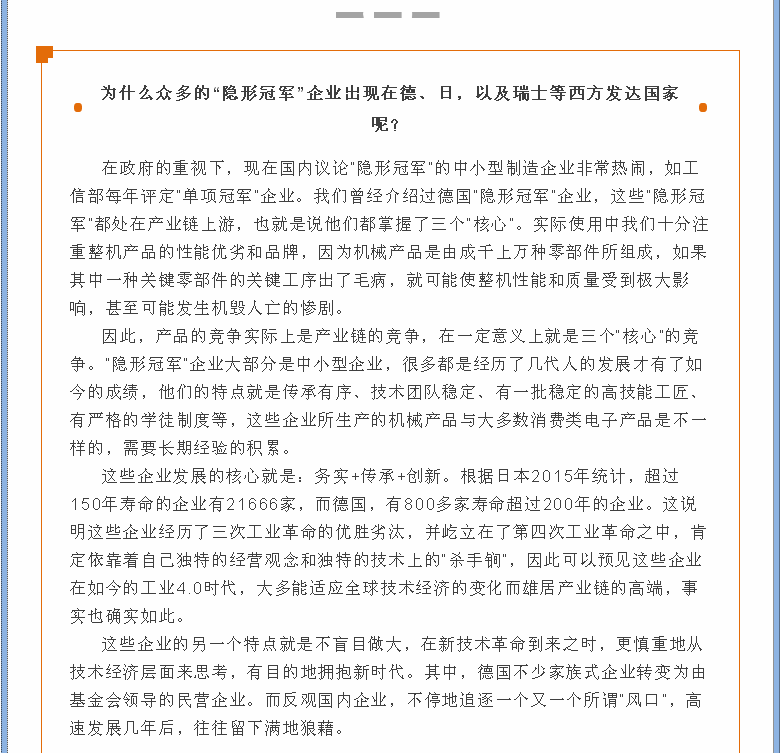 德國制造業(yè)“隱形冠軍”企業(yè)啟示錄